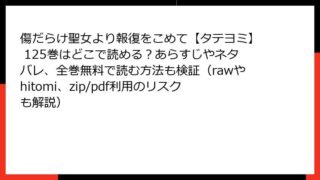 傷だらけ聖女より報復をこめて【タテヨミ】 傷だらけ聖女より報復をこめて【タテヨミ】 125巻はどこで読める?あらすじやネタバレ、全巻無料で読む方法も検証(rawやhitomi、zip/pdf利用のリスクも解説)