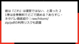 彼は『これ』は復讐ではない、と言った 彼は『これ』は復讐ではない、と言った 21巻は全巻無料でどこで読める?あらすじ・ネタバレ徹底紹介|raw/hitomi/zip/pdfの利用リスクも調査