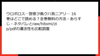 ウロボロス―警察ヲ裁クハ我ニアリ― ウロボロス―警察ヲ裁クハ我ニアリ― 9巻全巻無料で読むには?どこで読めるか徹底調査|あらすじ&ネタバレ・raw/hitomi/zip/pdfの危険も暴露