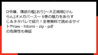 Ω令嬢、情欲の檻(おり)~大正絢爛(けんらん)オメガバース~ Ω令嬢、情欲の檻(おり)~大正絢爛(けんらん)オメガバース~ 57巻の全巻無料情報まとめ!どこで読める?あらすじ・ネタバレとraw/hitomi/zip/pdfの利用に関する注意点も網羅