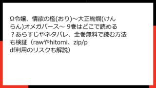 Ω令嬢、情欲の檻(おり)~大正絢爛(けんらん)オメガバース~ Ω令嬢、情欲の檻(おり)~大正絢爛(けんらん)オメガバース~ 10巻全巻無料で読むには?どこで読めるか徹底調査|あらすじ&ネタバレ・raw/hitomi/zip/pdfの危険も暴露