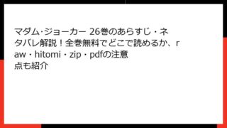 マダム・ジョーカー マダム・ジョーカー 19巻のあらすじ・ネタバレ解説!全巻無料でどこで読めるか、raw・hitomi・zip・pdfの注意点も紹介