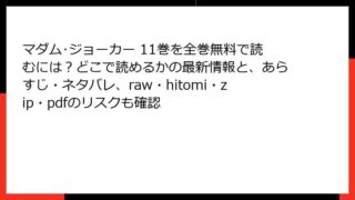 マダム・ジョーカー マダム・ジョーカー 11巻を全巻無料で読むには?どこで読めるかの最新情報と、あらすじ・ネタバレ、raw・hitomi・zip・pdfのリスクも確認