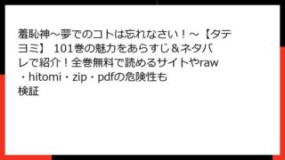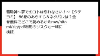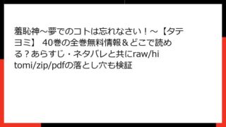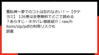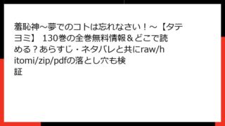 羞恥神~夢でのコトは忘れなさい!~【タテヨミ】 羞恥神~夢でのコトは忘れなさい!~【タテヨミ】 139巻のあらすじ・ネタバレをチェック!全巻無料で読める場所は?raw/hitomi/zip/pdfの危険性も解説