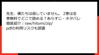 先生、僕たちは殺していません。 先生、僕たちは殺していません。 2巻は全巻無料でどこで読める?あらすじ・ネタバレ徹底紹介|raw/hitomi/zip/pdfの利用リスクも調査 『先生、僕たちは殺していません。』2巻 徹底レビュー:復讐の連鎖が加速する衝撃の展開 こんにちは、漫画好きのブロガーです。今回は、スクウェア・エニックスから2025年4月12日に発売された『先生、僕たちは殺していません。』の2巻について、詳... 2025.09.13 先生、僕たちは殺していません。少年マンガ