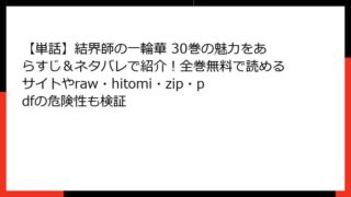 【単話】結界師の一輪華 【単話】結界師の一輪華 33巻は全巻無料でどこで読める?あらすじ・ネタバレ徹底紹介|raw/hitomi/zip/pdfの利用リスクも調査
