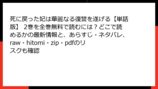死に戻った妃は華麗なる復讐を遂げる【単話版】 21巻の詳しいあらすじ 物語の全体像と21巻の位置づけ 「死に戻った妃は華麗なる復讐を遂げる」は、タイムリープを題材にした復讐ファンタジー漫画です。主人公のキャサリンが、無実の罪で処刑された後、...