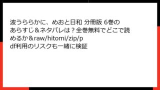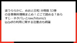 波うららかに、めおと日和 分冊版 波うららかに、めおと日和 分冊版 50巻のあらすじ&ネタバレは?全巻無料でどこで読めるか&raw/hitomi/zip/pdf利用のリスクも一緒に検証