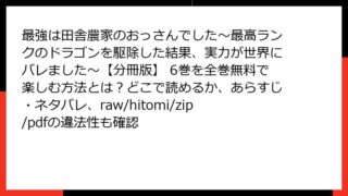 少年マンガ 最強は田舎農家のおっさんでした~最高ランクのドラゴンを駆除した結果、実力が世界にバレました~【分冊版】 6巻を全巻無料で楽しむ方法とは?どこで読めるか、あらすじ・ネタバレ、raw/hitomi/zip/pdfの違法性も確認