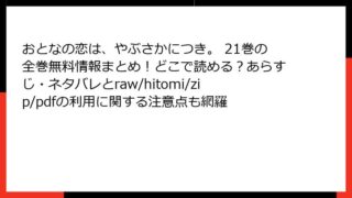 おとなの恋は、やぶさかにつき。 おとなの恋は、やぶさかにつき。 15巻はどこで読める?あらすじやネタバレ、全巻無料で読む方法も検証(rawやhitomi、zip/pdf利用のリスクも解説)