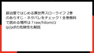 鍛冶屋ではじめる異世界スローライフ 1巻 あらすじ詳解 この記事では、人気異世界ファンタジーコミック「鍛冶屋ではじめる異世界スローライフ」の1巻について、詳細なあらすじを解説します。元社畜がチート級の鍛冶スキルでスローライフを目指す物語です...