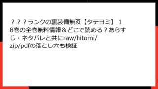 ???ランクの裏装備無双【タテヨミ】 69巻のあらすじ詳解 シリーズ全体の概要と背景 『???ランクの裏装備無双【タテヨミ】』は、ファンタジー要素満載の冒険漫画で、主人公のジンフリーが中心に描かれる物語です。ジンフリーは、貧しい家庭を支える...