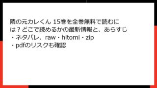 女性マンガ 隣の元カレくん 12巻を全巻無料で楽しむ方法とは?どこで読めるか、あらすじ・ネタバレ、raw/hitomi/zip/pdfの違法性も確認