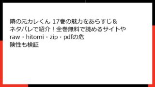 隣の元カレくん 2巻のあらすじを詳しく解説 こんにちは、漫画好きの皆さん!今日は、ago先生の人気作「隣の元カレくん」の2巻について、詳しくあらすじを掘り下げてお届けします。この作品は、40歳の主人公たちが織りなすすれ違い復縁ラブが魅力で、...