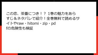 この恋、茶番につき!? 8巻のあらすじ詳解 人気漫画「この恋、茶番につき!?」の8巻は、偽装夫婦の茶子と一心の関係がさらに深まる一方で、新たなライバルや事件が絡み、ドラマチックに展開します。茶農家を舞台にしたラブコメディが、炎上騒動や全国大...