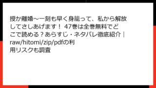 女性マンガ 授か離婚~一刻も早く身籠って、私から解放してさしあげます! 28巻はどこで読める?あらすじやネタバレ、全巻無料で読む方法も検証(rawやhitomi、zip/pdf利用のリスクも解説)