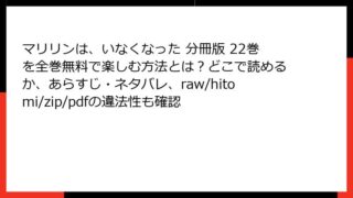 マリリンは、いなくなった 分冊版 マリリンは、いなくなった 分冊版 11巻を全巻無料で読むには?どこで読めるかの最新情報と、あらすじ・ネタバレ、raw・hitomi・zip・pdfのリスクも確認