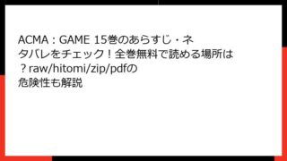 ACMA:GAME ACMA:GAME 15巻のあらすじ・ネタバレをチェック!全巻無料で読める場所は?raw/hitomi/zip/pdfの危険性も解説 ACMA:GAME 15巻:頭脳と心理の極限バトルが加速する中巻のハイライト こんにちは、漫画好きの皆さん! 今日のブログ記事では、恵広史作画・メーブ原作の人気ギャンブルバトル漫画『ACMA:GAME』(アクマゲーム)の第15巻について、詳... 2025.09.17 ACMA:GAME少年マンガ