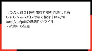 七つの大罪 七つの大罪 41巻の全巻無料情報まとめ!どこで読める?あらすじ・ネタバレとraw/hitomi/zip/pdfの利用に関する注意点も網羅
