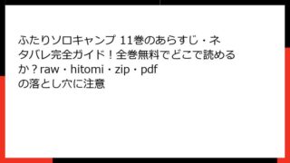 ふたりソロキャンプ ふたりソロキャンプ 4巻全巻無料で読むには?どこで読めるか徹底調査|あらすじ&ネタバレ・raw/hitomi/zip/pdfの危険も暴露