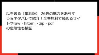 『瓜を破る【単話版】 23巻』の魅力に迫る! 心揺さぶる女性たちの現代ドラマを深掘り こんにちは、漫画好きのブロガーです! 今日は、板倉梓先生の傑作『瓜を破る【単話版】』の23巻について、詳しいあらすじを交えながらお届けします。この作品は、...