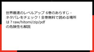 世界最速のレベルアップ 世界最速のレベルアップ 6巻のあらすじ・ネタバレをチェック!全巻無料で読める場所は?raw/hitomi/zip/pdfの危険性も解説 世界最速のレベルアップ 6巻:圧倒的な成長と家族の絆が交錯する激動の章 こんにちは、マンガ好きの皆さん! 今回は、ダンジョン探索と超成長ファンタジーの傑作『世界最速のレベルアップ』第6巻のあらすじを、たっぷり詳しくお届けします。このシリーズ... 2025.09.18 世界最速のレベルアップ少年マンガ
