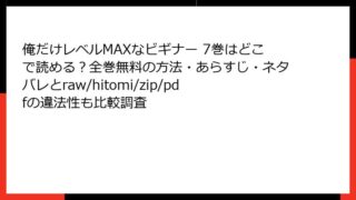 俺だけレベルMAXなビギナー 俺だけレベルMAXなビギナー 7巻はどこで読める?全巻無料の方法・あらすじ・ネタバレとraw/hitomi/zip/pdfの違法性も比較調査