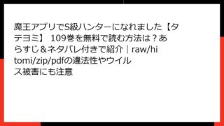 魔王アプリでS級ハンターになれました【タテヨミ】 109巻のあらすじ詳解 この人気タテヨミ漫画の109巻では、主人公の飯島ヒロトがさらに深い謎に直面します。ダンジョン世界での成長物語が、魔王との再邂逅という衝撃的な展開を迎え、読者を引き込む...
