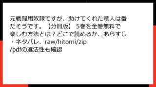 元戦闘用奴隷ですが、助けてくれた竜人は番だそうです。【分冊版】 元戦闘用奴隷ですが、助けてくれた竜人は番だそうです。【分冊版】 7巻を全巻無料で読むには?どこで読めるかの最新情報と、あらすじ・ネタバレ、raw・hitomi・zip・pdfのリスクも確認