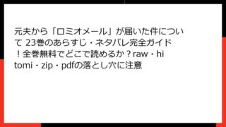 元夫から「ロミオメール」が届いた件について 元夫から「ロミオメール」が届いた件について 5巻のあらすじ・ネタバレをチェック!全巻無料で読める場所は?raw/hitomi/zip/pdfの危険性も解説