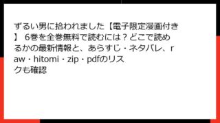 BLマンガ ずるい男に拾われました【電子限定漫画付き】 6巻を全巻無料で読むには?どこで読めるかの最新情報と、あらすじ・ネタバレ、raw・hitomi・zip・pdfのリスクも確認
