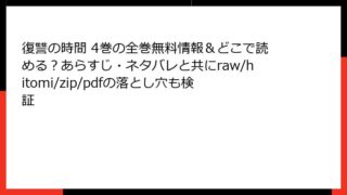 復讐の時間 1巻のあらすじ詳解 この記事では、漫画『復讐の時間』1巻のあらすじを詳しく掘り下げて紹介します。家族の崩壊と復讐の始まりを描いたサスペンスフルなストーリーです。ネタバレを含むので、未読の方はご注意ください。物語の流れを追いながら...