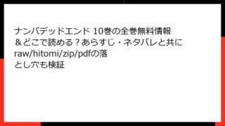 ナンバデッドエンド ナンバデッドエンド 14巻の全巻無料情報&どこで読める?あらすじ・ネタバレと共にraw/hitomi/zip/pdfの落とし穴も検証