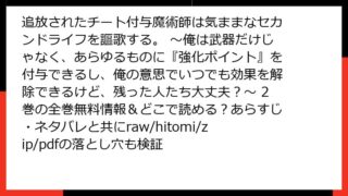 少年マンガ 追放されたチート付与魔術師は気ままなセカンドライフを謳歌する。 ~俺は武器だけじゃなく、あらゆるものに『強化ポイント』を付与できるし、俺の意思でいつでも効果を解除できるけど、残った人たち大丈夫?~ 2巻の全巻無料情報&どこで読める?あらすじ・ネタバレと共にraw/hitomi/zip/pdfの落とし穴も検証