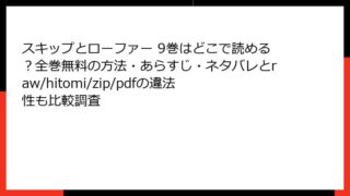 スキップとローファー スキップとローファー 9巻はどこで読める?全巻無料の方法・あらすじ・ネタバレとraw/hitomi/zip/pdfの違法性も比較調査