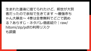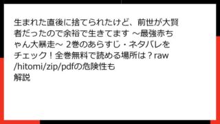 生まれた直後に捨てられたけど、前世が大賢者だったので余裕で生きてます ~最強赤ちゃん大暴走~ 生まれた直後に捨てられたけど、前世が大賢者だったので余裕で生きてます ~最強赤ちゃん大暴走~ 4巻は全巻無料でどこで読める?あらすじ・ネタバレ徹底紹介|raw/hitomi/zip/pdfの利用リスクも調査