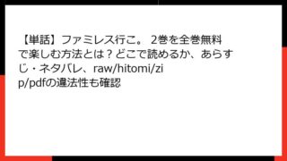 【単話】ファミレス行こ。 【単話】ファミレス行こ。 3巻を全巻無料で楽しむ方法とは?どこで読めるか、あらすじ・ネタバレ、raw/hitomi/zip/pdfの違法性も確認