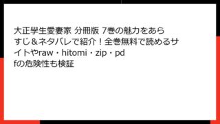 大正學生愛妻家 分冊版 大正學生愛妻家 分冊版 7巻の魅力をあらすじ&ネタバレで紹介!全巻無料で読めるサイトやraw・hitomi・zip・pdfの危険性も検証