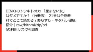 DINKsのトツキトオカ 「産まない女」はダメですか?(分冊版) DINKsのトツキトオカ 「産まない女」はダメですか?(分冊版) 27巻のあらすじ・ネタバレをチェック!全巻無料で読める場所は?raw/hitomi/zip/pdfの危険性も解説