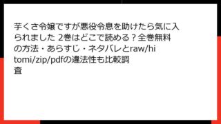 少女マンガ 芋くさ令嬢ですが悪役令息を助けたら気に入られました 4巻はどこで読める?全巻無料の方法・あらすじ・ネタバレとraw/hitomi/zip/pdfの違法性も比較調査