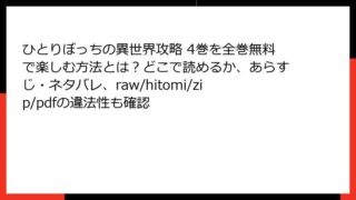 ひとりぼっちの異世界攻略 ひとりぼっちの異世界攻略 4巻を全巻無料で楽しむ方法とは?どこで読めるか、あらすじ・ネタバレ、raw/hitomi/zip/pdfの違法性も確認