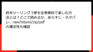 少年マンガ 終末ツーリング 5巻を全巻無料で楽しむ方法とは?どこで読めるか、あらすじ・ネタバレ、raw/hitomi/zip/pdfの違法性も確認 終末ツーリング 5巻:朽ち果てた世界を駆け抜ける少女たちの新たな出会い 皆さん、こんにちは! バイク好き、ポストアポカリプスもの好きにはたまらない作品、それが『終末ツーリング』です。さいとー栄先生の傑作コミックが、電撃マオウで連載中ですが、... 2025.10.08 少年マンガ終末ツーリング