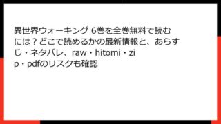 少年マンガ 異世界ウォーキング 6巻を全巻無料で読むには?どこで読めるかの最新情報と、あらすじ・ネタバレ、raw・hitomi・zip・pdfのリスクも確認 異世界ウォーキング 6巻の魅力に迫る! ゆったり異世界探訪の新章レビュー こんにちは、ファンタジー漫画好きのブロガーです! 今日のレビューは、講談社マガジンポケットで連載中の人気作『異世界ウォーキング』の6巻。作者は原作・小川慧さん、漫画・... 2025.10.09 少年マンガ異世界ウォーキング