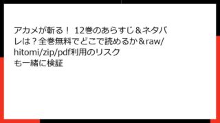 アカメが斬る! 12巻 あらすじ詳解 人気ダークファンタジーマンガ「アカメが斬る!」の12巻は、激しい戦闘とキャラクターの運命が交錯する展開が魅力です。ナイトレイドのメンバーたちが帝国の強敵に挑む中、脱出劇や新たな脅威が描かれます。ここでは...