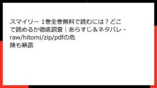 スマイリー スマイリー 10巻はどこで読める?あらすじやネタバレ、全巻無料で読む方法も検証(rawやhitomi、zip/pdf利用のリスクも解説)