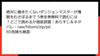 少年マンガ 絶対に働きたくないダンジョンマスターが惰眠をむさぼるまで 5巻全巻無料で読むには?どこで読めるか徹底調査|あらすじ&ネタバレ・raw/hitomi/zip/pdfの危険も暴露 絶対に働きたくないダンジョンマスターが惰眠をむさぼるまで 5巻:怠惰なダンジョンがさらに進化! こんにちは、漫画好きの皆さん! 今日も異世界ファンタジーの世界に浸りたい気分でしょ? 今回は、鬼影スパナ原作、七六作画の人気コミカライズ作品『絶... 2025.10.11 少年マンガ絶対に働きたくないダンジョンマスターが惰眠をむさぼるまで