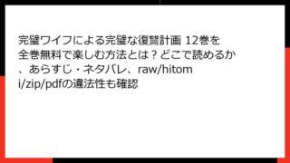 女性マンガ 完璧ワイフによる完璧な復讐計画 21巻はどこで読める?あらすじやネタバレ、全巻無料で読む方法も検証(rawやhitomi、zip/pdf利用のリスクも解説)