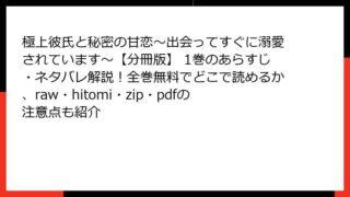 極上彼氏と秘密の甘恋~出会ってすぐに溺愛されています~【分冊版】 4巻のあらすじ 物語の全体像と背景 この漫画は、恋愛経験ゼロの奥手な女性が、アプリを通じた出会いから始まる甘い恋に落ちていく様子を描いたロマンティックストーリーです。主人公の...