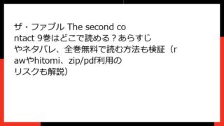 ザ・ファブル The second contact ザ・ファブル The second contact 9巻はどこで読める?あらすじやネタバレ、全巻無料で読む方法も検証(rawやhitomi、zip/pdf利用のリスクも解説)