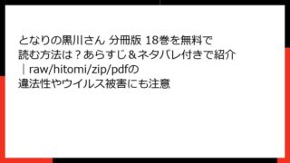 となりの黒川さん 分冊版 となりの黒川さん 分冊版 18巻を無料で読む方法は?あらすじ&ネタバレ付きで紹介|raw/hitomi/zip/pdfの違法性やウイルス被害にも注意